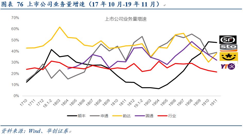 4、快递:业务量仍处于经济区间,关注行业结构的变化。