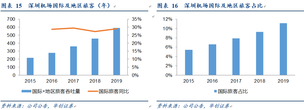 深圳机场: 2019年全年旅客突破5000万人,增长率为5.2%,国际+地区旅客突破500万人,增长率为29%。